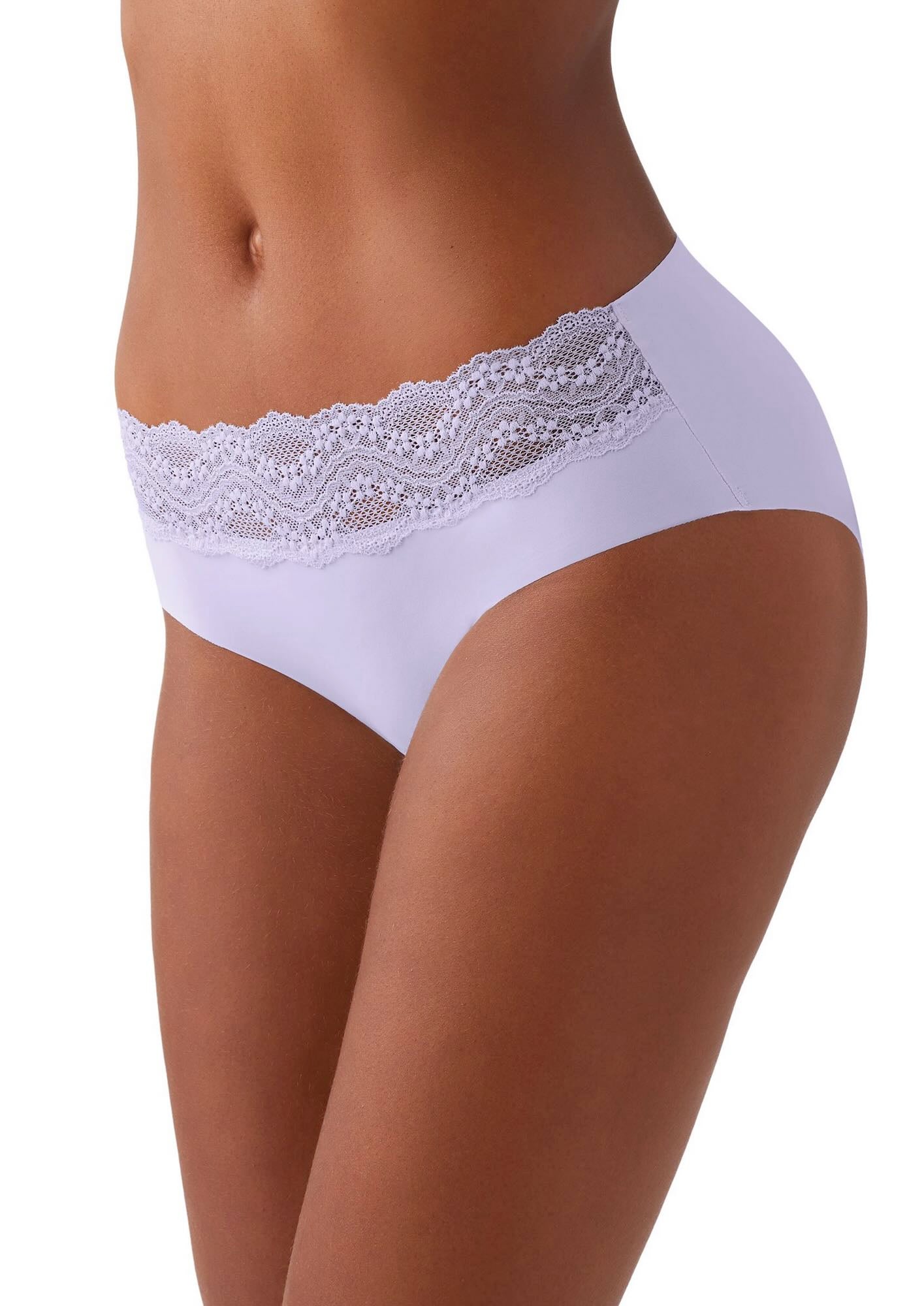 - Smooth, lightweight hipster with lace trim.