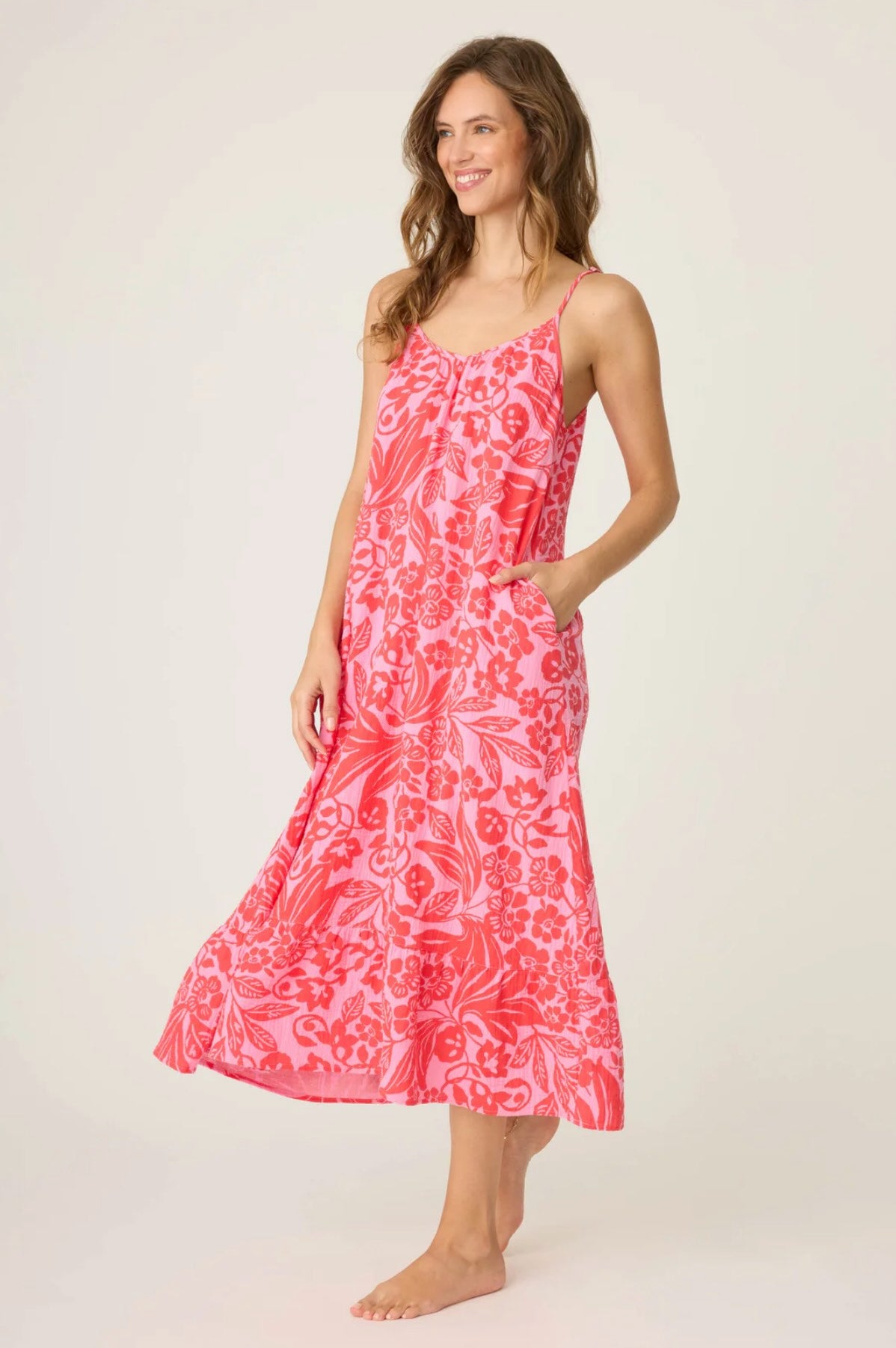 - This dress features pockets and adjustable straps.