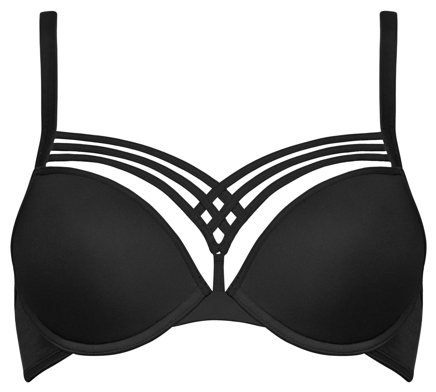 - Fabric over the cups is smooth in black and in ivory a subtle pyramid design.