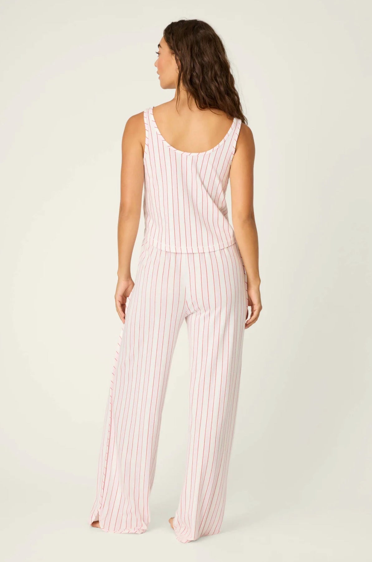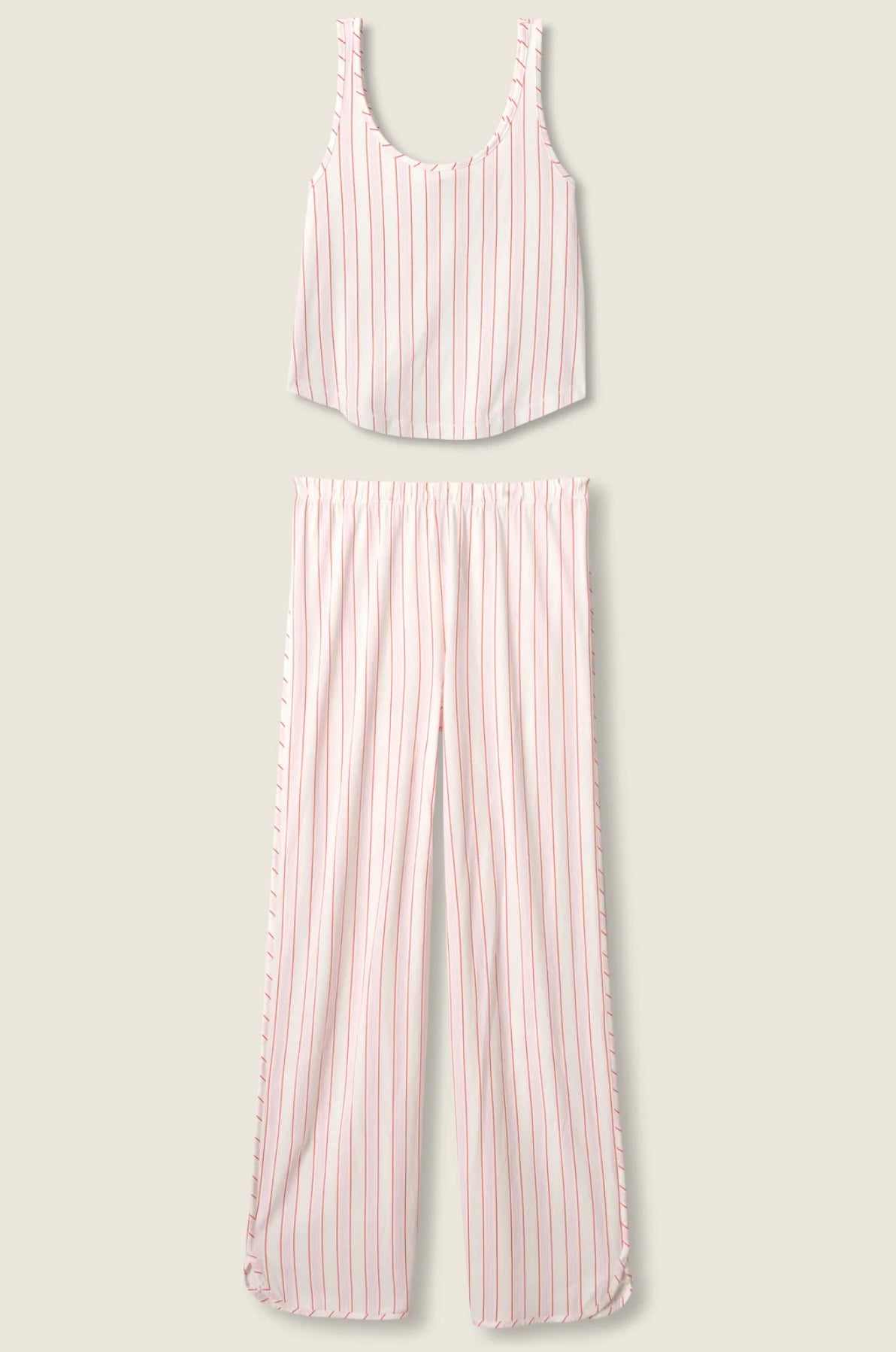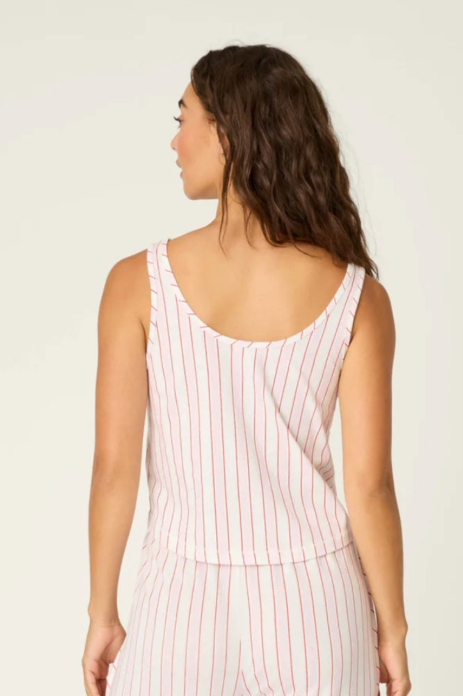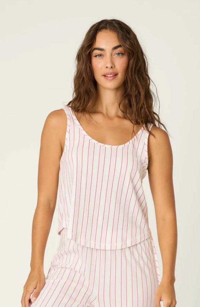 - Soft cotton/modal jersey camisole in a cute red, pink and ivory stripe.